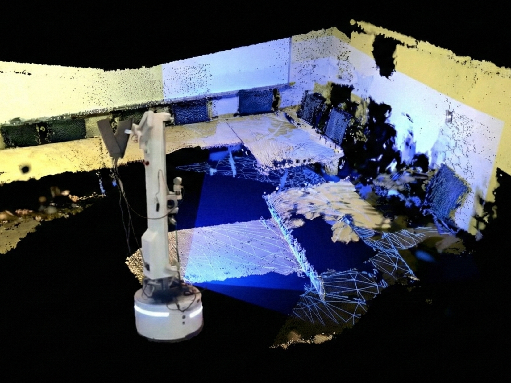 Autonomous robot system navigating unknown indoor environments with LiDAR/RGB-D to reconstruct high-fidelity 3D scenes via Gaussian Splatting.
