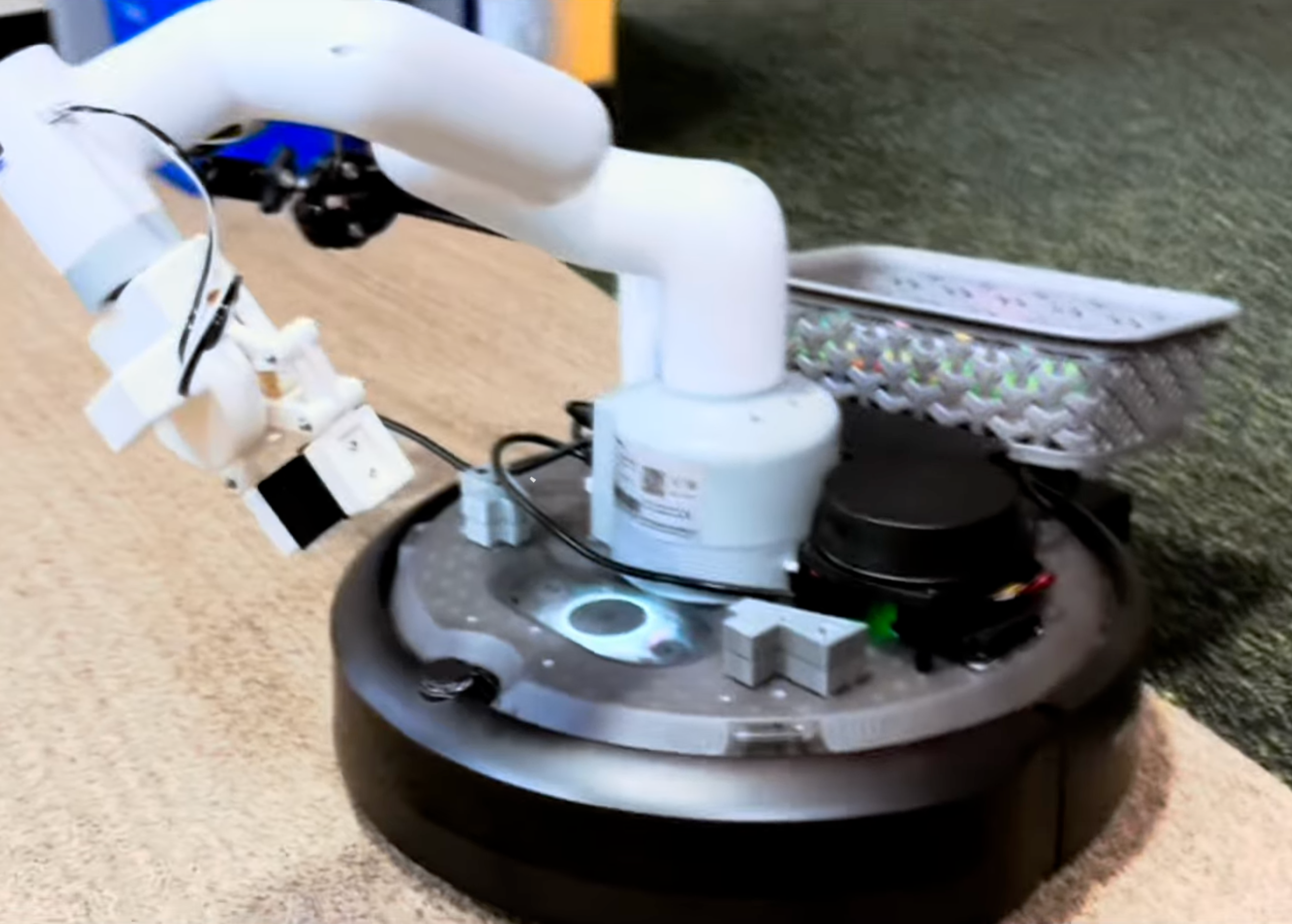 Mobile manipulation platform integrating a collaborative arm with a mobile base for household tasks like tidying toys.