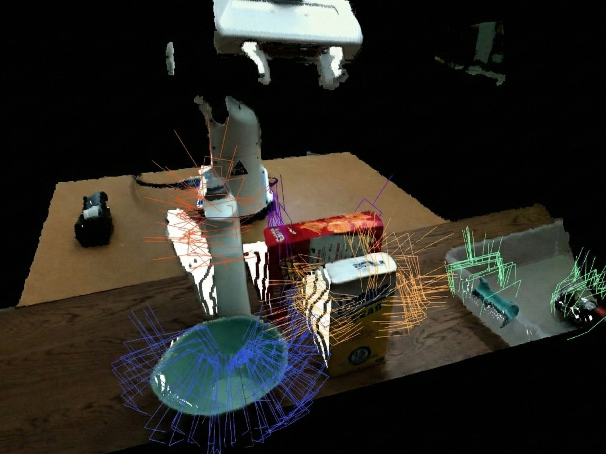 Collision-free grasp generator analyzing 3D object meshes to propose viable Franka end-effector poses for RL priors and hardware co-design.